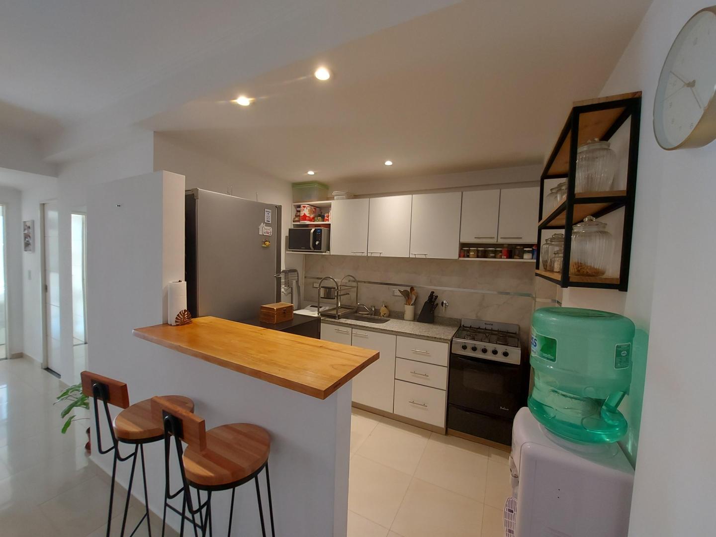 Amplio Living comedor, cocina semi integrada con muebles altos y bajos, dormitorio con placard y salida al balcón contrafrente con muy linda vista.